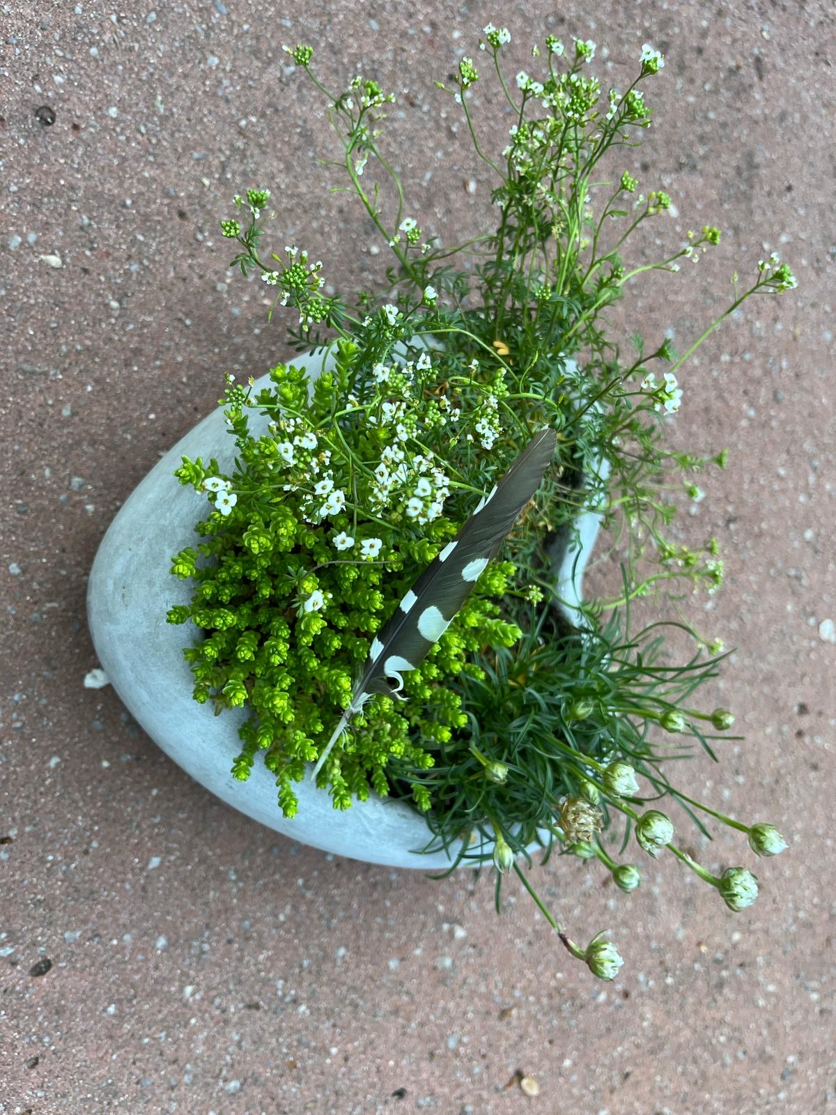 Ich setze das Konzept in liebevoller Handarbeit um – mit abgestimmten Blüten, Kräutern und Naturmaterialien.
